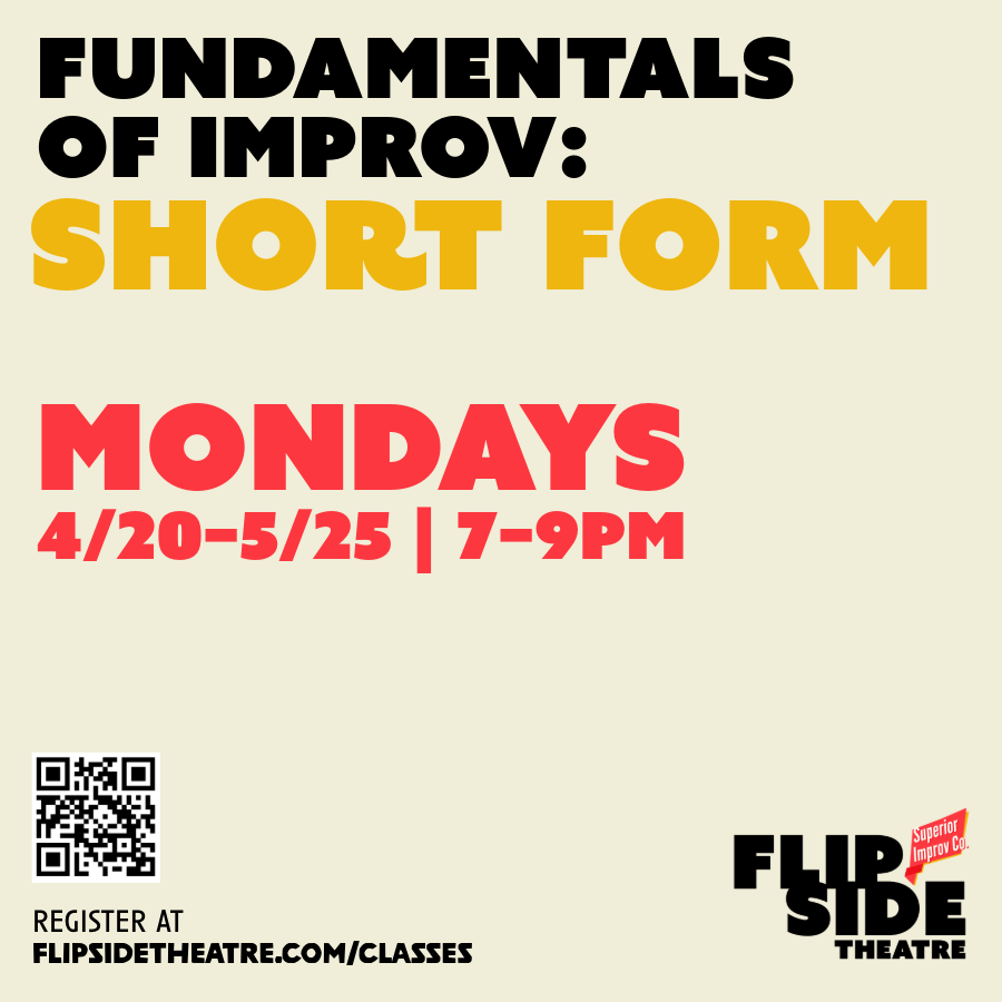 At the end of the course there will be opportunities to perform on the Flipside stage. Come laugh, learn, and make connections that last far beyond the class.